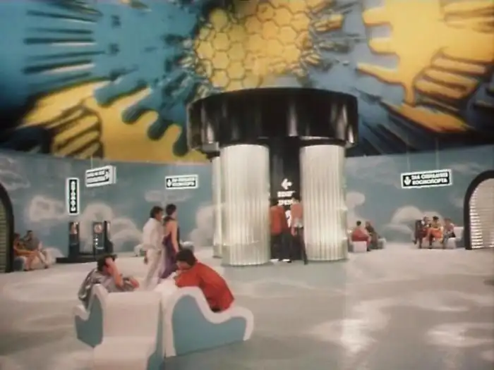 Кстати, внешний вид необычного для фантастики плоского фанерного автобуса придумал режиссер картины. Павел Арсенов не хотел придумывать и так мозолившие глаза в каждом фильме подобной тематики пульты и нагромождение кнопок. Почему бы в будущем не сделать процесс мгновенного перемещения как можно более простым — открыл дверь, и ты уже на другом краю Земли?