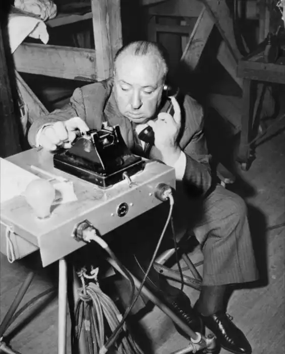 1954. Альфред Хичкок на съемках «В случае убийства набирайте М.»