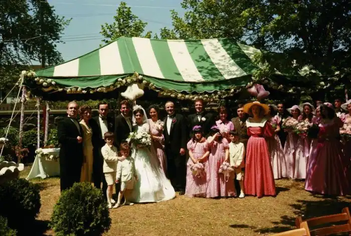 1974. Аль Пачино, Дайан Китон и их «дети» на съемках «Крестного отца», часть II