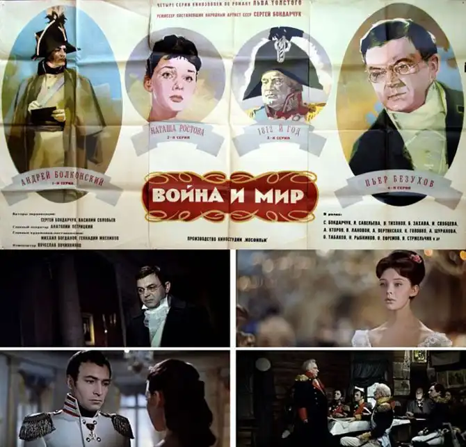 Фильм стал известен благодаря масштабным батальным сценам и применению новаторской панорамной съёмки полей сражений. Одна из центральных работ в творчестве Сергея Бондарчука — создание фильма заняло около 6 лет (1961—1967). Премия «Оскар» за лучший фильм на иностранном языке (1969). Главный приз Московского международного кинофестиваля 1965 года. 1-я серия («Андрей Болконский») — лидер проката в СССР в 1966 году (58 млн зрителей). «Война и мир» считается одним из наиболее масштабных проектов в мировой и советской кинематографии. Создатели получили доступ к музейным фондам, использовали для съёмок подлинную мебель и аксессуары XIX века. Для пошива костюмов директор картины привлёк Госплан СССР и Министерство лёгкой промышленности СССР
