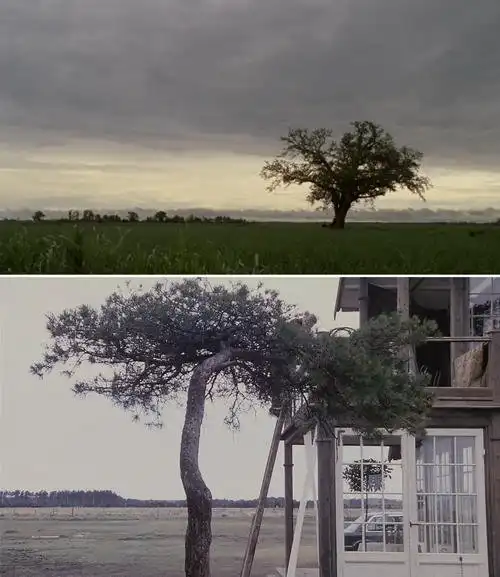 Андрей Тарковский. В начальной и заключительной сценах пилотного эпизода нашлись визуальные приветы творчеству Андрея Тарковского. Что символично, к первому и последнему его фильмам, но в обратном порядке. Дерево, под которым обнаруживают Дору Лэнг, — своеобразная аллюзия на дерево из «Жертвоприношения», а вот мизансцена в декорациях разрушенной церкви перекочевала в сериал из фильма «Иваново детство». То же самое дерево появится и в заключительной сцене «Детектива» — видимо, чтобы наглядно донести до нас мысль о том, что время — замкнутый круг.