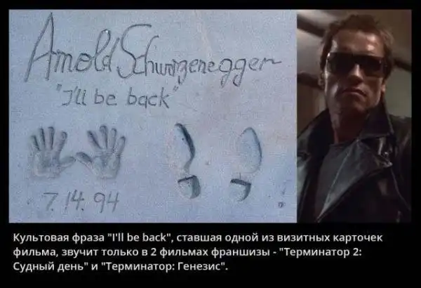 Стоп, а разве фраза I'll be back не из первой части изначально пошла? Написано, что только во второй и пятой она используется.
