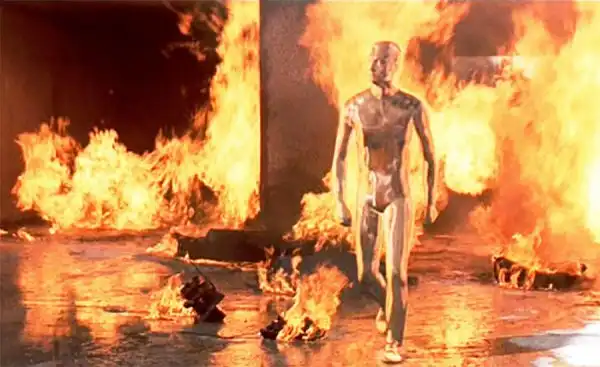 Идея о Т-1000 тоже, естественно, была в разработке у Кэмерона - идея о роботе, умеющем менять форму и принимать любой облик пришла к нему ещё в начале 80-х. Но он очень сомневался, возможно ли это достаточно качественно воплотить на экране. Лишь после того, как специалисты из компании ILM, которые создали водяное щупальце для «Бездны», заверили что это возможно и даже сделали пробный кадр выходящего из огня Т-1000, Кэмерон понял, что плохой Терминатор найден.