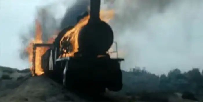Тяжело проходили съёмки горящего моста. Успеет ли состав проехать по нему. Для эксперимента рядом построили точно такой же мост и подожгли его, чтобы засечь время горения. 34 минуты. Решили что успеют снять. Но режиссёр решил не рисковать возрастным актёром Кашириным (машинист поезда) и сменил его на время съёмок эпизода. Погоняв паровой несколько часов туда-сюда, Кеосаян дал команду «Мотор!» Но не смотря на всю подготовку, всем было очень страшно — вдруг мост рухнет раньше чем было на макете? Но всё прошло успешно.