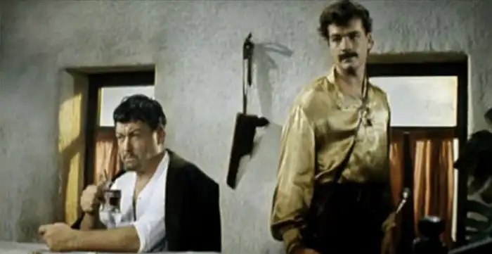 «Эпизод надо было снять очень динамично. И вот очередной дубль. Мы стоим на крыше, звучит команда: пошли!.. Прыгает Лютый — все хорошо. Прыгаю я, и в это время конь отходит в сторону. Так что сигаю мимо седла… Еще дубль. Мы опять бежим по крыше. На сей раз непонятно почему, но уже обе лошади стремительно срываются с места. Мы об этом, естественно, не догадываемся. Лютый прыгает на землю, а я… ему на плечи. Хорошо, что Лютый (актер Владимир Трещалов) обладал богатым чувством юмора. С криком „И-го-го!“ он проскакал со мной на плечах своеобразный „круг почета“…