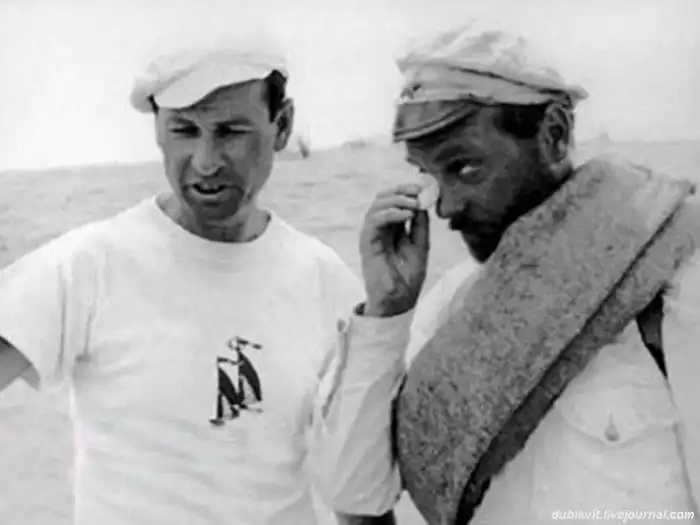 П.Луспекаев и В. Мотыль на съемках фильма «Белое солнце пустыни». 1970