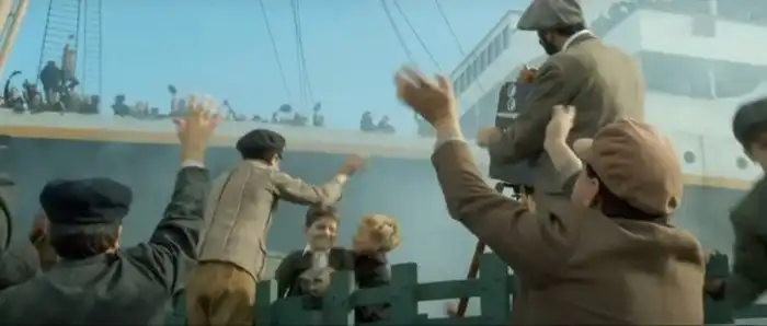 Во время всеобщей паники и происходящего на борту "Титаника" хаоса наблюдательные зрители заметили неожиданно счастливого ребенка, который смотрит прямо в камеру и улыбается.