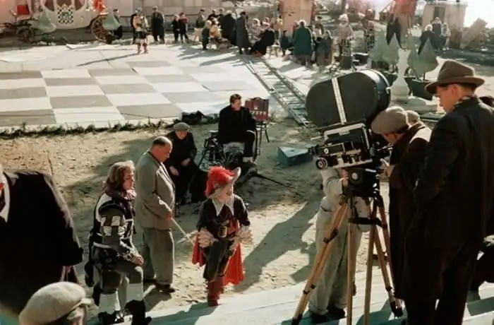 Режиссер на съемках фильма *Новые похождения кота в сапогах*, 1958
