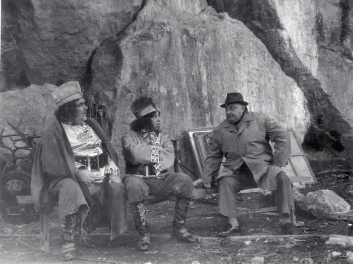 Александр Роу на съемках фильма *Золотые рога*, 1972