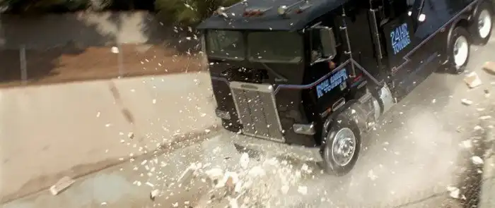Чтобы не отвлекать исполняющего роль Т-1000 актера, ему не доверили управление фурой. На самом деле Роберт Патрик за фальшивым рулем сидит справа, а на месте водителя прячется опытный каскадер, который и руководит всей махиной. Потом нужные кадры зеркально отразили, так что кажется, будто слева на месте водителя действительно находится киборг.