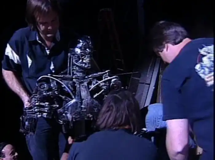 А вот «раны» от пуль на теле робота последнего поколения делали без компьютера. Актер надевал специальный жилет с взведенными на пружинах «розочками» из вспененной резины. Как только в Т-1000 должна была попасть пуля, ассистент удаленно активировал пружину — «дырка» от выстрела раскрывалась. Зато затягивать все раны пришлось с помощью компьютерной анимации.