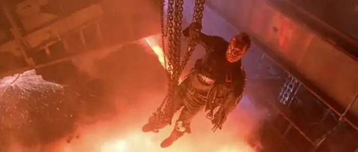 Финал снимали на настоящем заводе. Правда, было там далеко не так жарко, как это выглядит в фильме. Разумеется, ни о каком настоящем расплавленном металле не могло идти и речи. Вместо него съемочная группа использовала подсвеченную жижу из масла и сиропа. Необходимая тягучесть субстанции сохранялась только при температуре около пяти градусов, так что в помещении было холодно. Иллюзию жары пришлось создавать пульверизаторами с водой, которой брызгали на лица актеров.