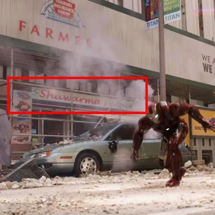 Во время большой битвы в "Мстителях" на экране появляется вход в кафе "Шаварма палас", где впоследствии обедают мстители.