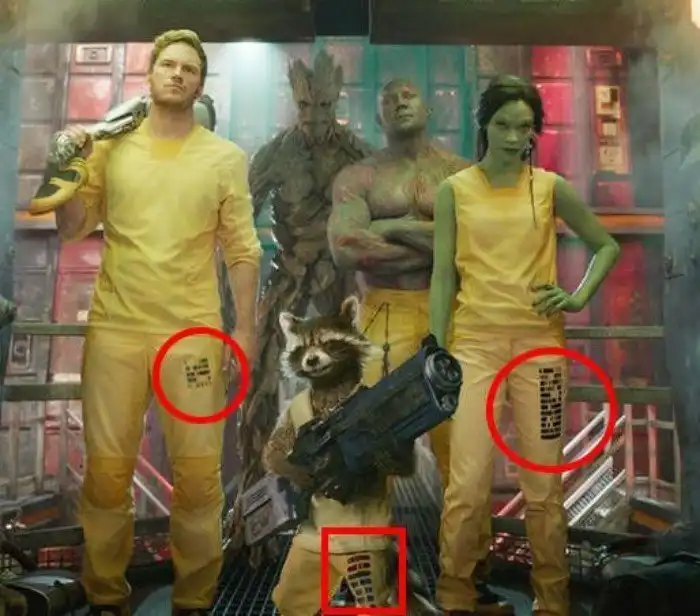 В "Стражах галактики" полосы на тюремных робах героев проведены не просто так: в них закодирована информация о совершенных ими преступлениях и о степени опасности каждого.