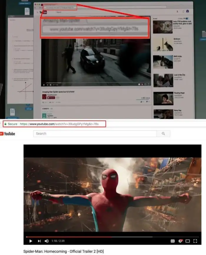 В фильме "Человек-паук: Возвращние домой" URL видео, которое смотрит Питер, в действительности соответствует URL трейлера этого фильма на канале Youtube.