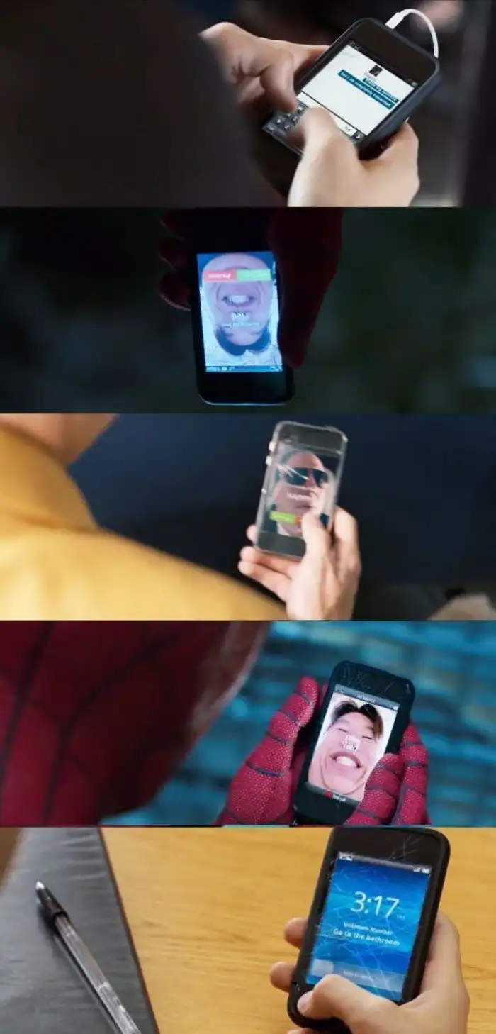 В фильме "Человек-паук: Возвращение домой" экран телефона Питерс атсновится все более побитым с каждой новой дракой.