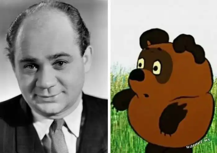 Изначально Винни Пух был срисован с любимого довоенного и старого мишки художника Владимира Зуйкова. Но этот образ был забракован режиссером. Мультипликаторы перепробовали множество вариантов, но ни один не подходил. Но однажды в студию пришел Евгений Леонов, когда пробовался на озвучивание. Режиссер сразу понял — добрый и милый актер был идеальным прототипом Винни Пуха.