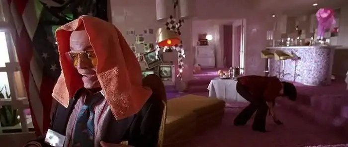 Но часто цвет в кадре несет не столько символический, сколько эмоциональный заряд. Например, для номера отеля Mint использовалось радикальное сочетание лилового и зеленого цветов, намеренно выбранное для создания ощущения тревоги и дискомфорта. Вообще для каждого заведения авторы продумывали свое, все более и более неуютное цветовое решение, подчеркивая тем самым ключевую мысль: «Каждое новое казино, в которое попадают герои, превращается в следующий круг ада».
