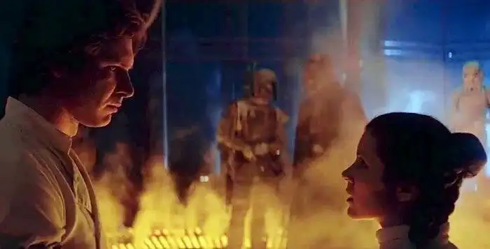 В сцене, когда принцесса Лея говорит Хану Соло, что она любит его, он должен был ответить: «Я тоже тебя люблю». Тем не менее, Харрисон Форд чувствовал, что этот ответ не подходит для характера его персонажа, поэтому вместо этого он ответил: «Я знаю».