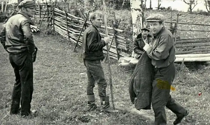 Сидели в курилке молча. Проходило минут двадцать-тридцать. Из павильона выходил Шукшин. Все еще бледный как смерть. Пошатываясь. Как-то виновато улыбаясь. Тоже курил вместе со всеми. Пытался даже шутить, чтобы как-то поднять настроение. Потом все шли в павильон. И снова приступ..."
