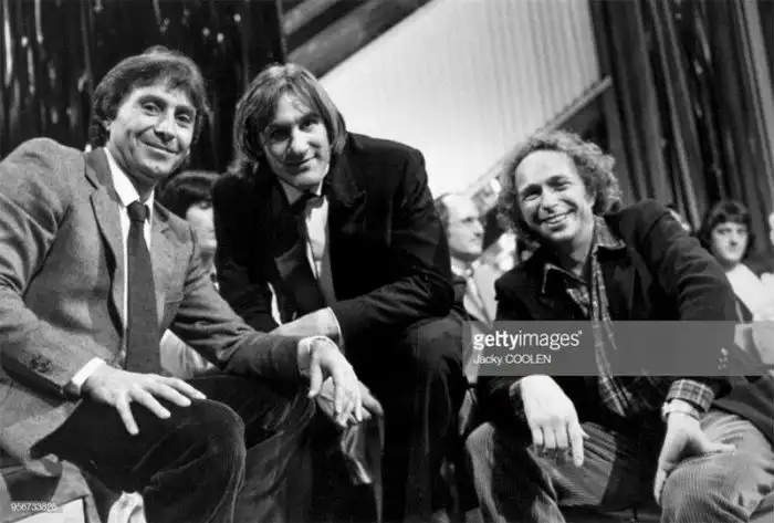 Франсис Вебер, Жерар Депардье и Пьер Ришар на съёмках фильма "Невезучие", 1982 год