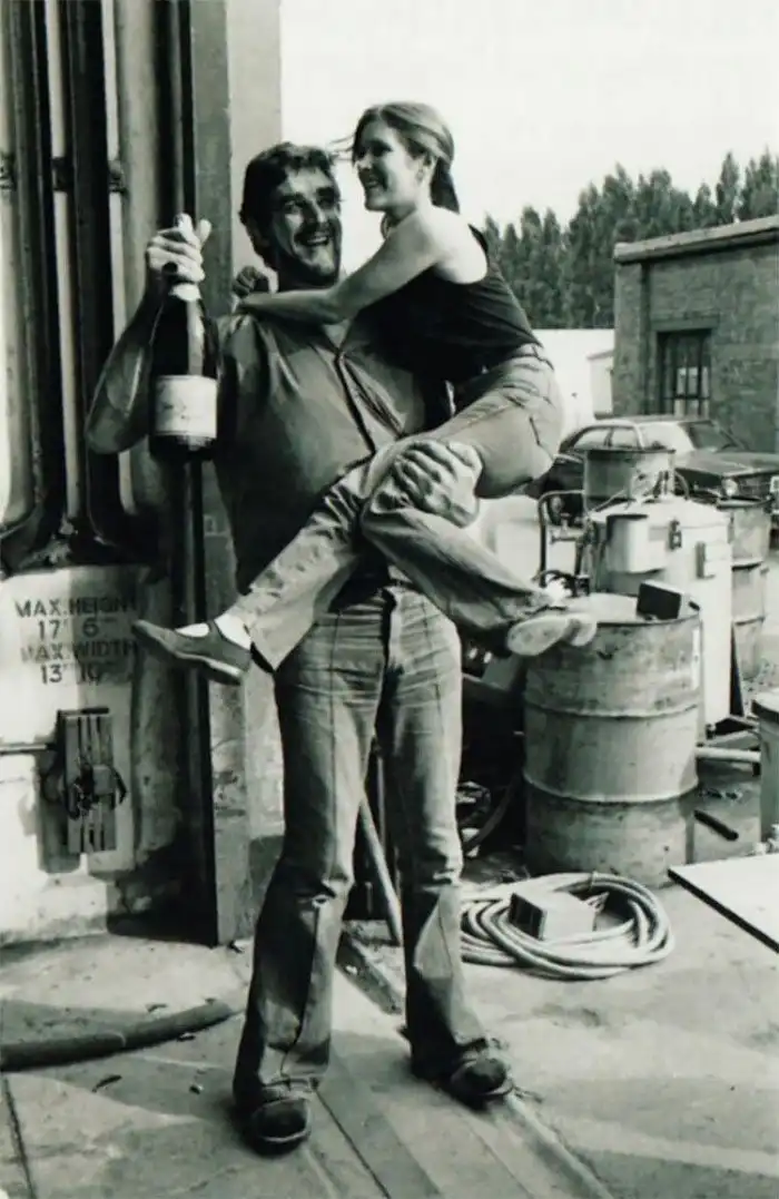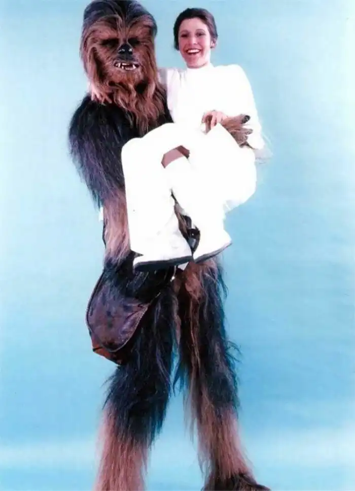 Питер Мейхью и Кэрри Фишер на съемках "Звездных войн"