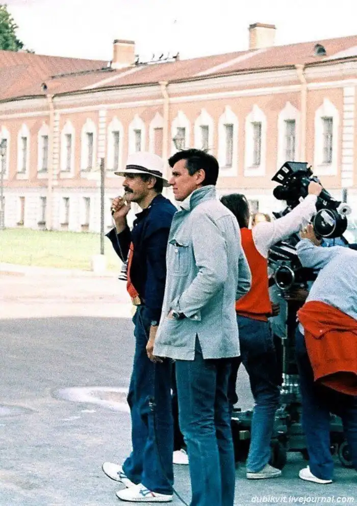 Никита Михалков и Николай Ващилин на съёмках фильма «Очи чёрные» в Петропавловской крепости.Ленинград, 1986 год