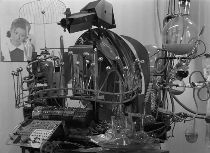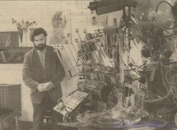 В кратчайшие сроки, всеми правдами и неправдами, но Машина была собрана. В помощники Почечуеву пристегнули двух слесарей. Вытащили со склада какие-то штуковины, оставшиеся после "Соляриса" Тарковского. Съездили в город Клин на стекольный завод, разместили заказ (который по слухам чуть ли не на следующий день изготовил за пару бутылок водки дядя Вася из продувного цеха - три ящика невообразимых, причудливых загогулин). Накупили мигалок, вспышек, реактивов, посуды для химических реактивных опытов, и Машина предстала в павильоне во всей красе.