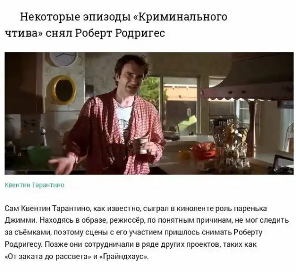 Этой осенью исполняется 25 лет фильму «Криминальное чтиво», ставшему одним из самых популярных фильмов всех времён и народов. Можно долго превозносить художественные достоинства фильма и неповторимый стиль режиссёра, но всё это лишнее — чтобы понять, в чём прелесть «Криминального чтива», нужно его просто посмотреть. Затем пересмотреть. И ещё раз пересмотреть. И ещё раз… И ещё — творение Тарантино из разряда тех киношедевров, которые никогда не надоедают.