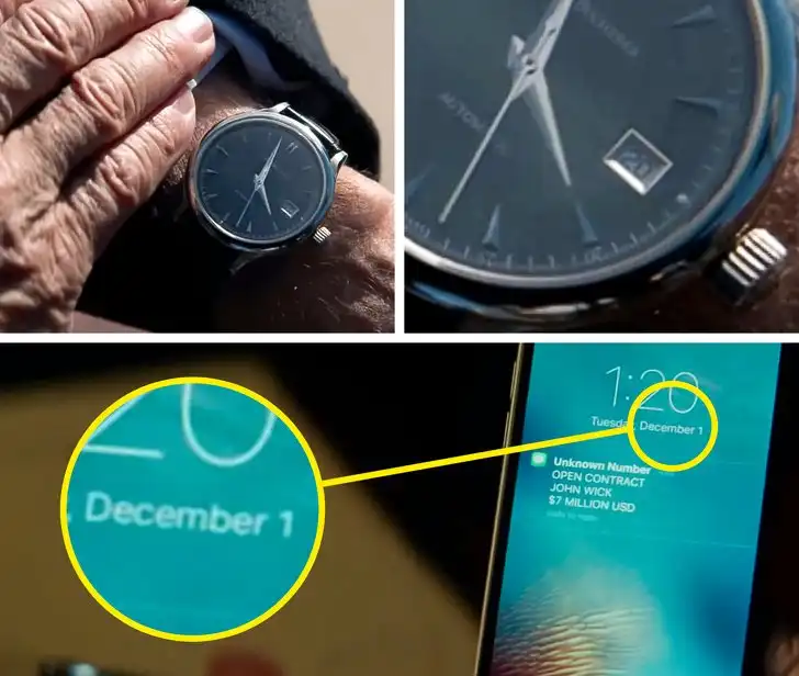 - В фильме «Джон Уик — 2» на часах Уинстона во время его встречи с главным героем мы видим дату — 20-е число. Однако за два дня до этого было 1 декабря. Очередные скачки во времени?