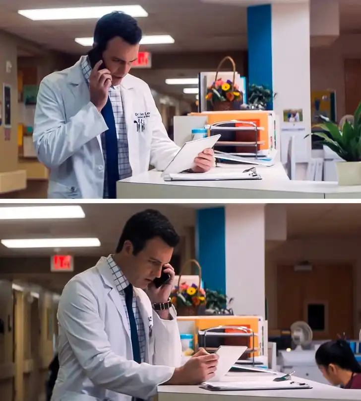- Дэн из «Венома» держит планшет в правой руке, а телефон — в левой, но уже в следующем кадре гаджеты магическим образом меняются местами.