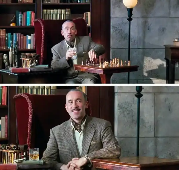 - Для досье шведской принцессы создатели «Kingsman: Секретная служба» использовали кадр из своего же фильма. Или Тильда просто не заметила в комнате фотографа, который снимал ее в упор?