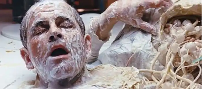 Из чего сделаны внутренности человекоподобного робота? Очевидно, из тех же самых ингредиентов что и романтический ужин. Когда Эша, героя фильма «Чужой» обезглавливают, то оказывается, что он робот. Чтобы показать его внутренности, съемочная команда состряпала ему нечто отвратительное из смеси молока, икры и макарон.