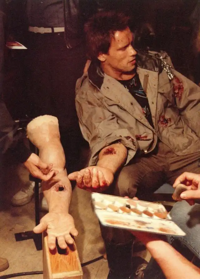 Шварценеггер назвал грим Терминатора "ужасной пыткой". Для образа ему заклеивали брови и размазывали смазку по лицу, чтобы оно блестело: "Это максимально некомфортно".