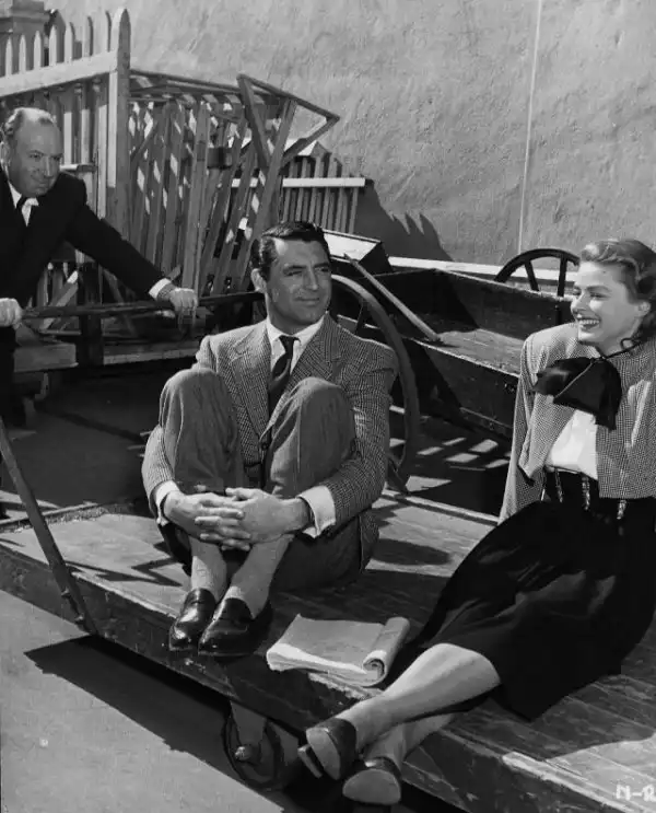 Давайте посмотрим на захватывающие закулисные и рекламные фотографии, на которых изображены Хичкок, Грант и Бергман во время съемок.