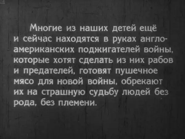 В 1949 году по сценарию Сергея Михалкова был снят фильм «У них есть Родина». С Кадочниковым, Раневской, Марецкой. О том, как подлые союзники не дают советским детям вернуться в Советский Союз.