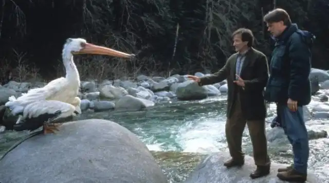 Робин Уильямс и режиссер Джо Джонстон на съемках фильма "Джуманджи", 1995 год, США