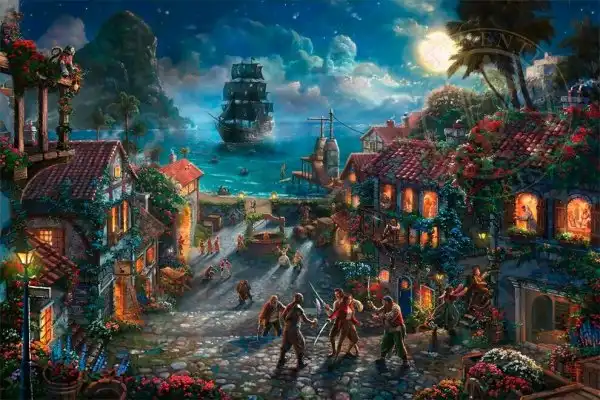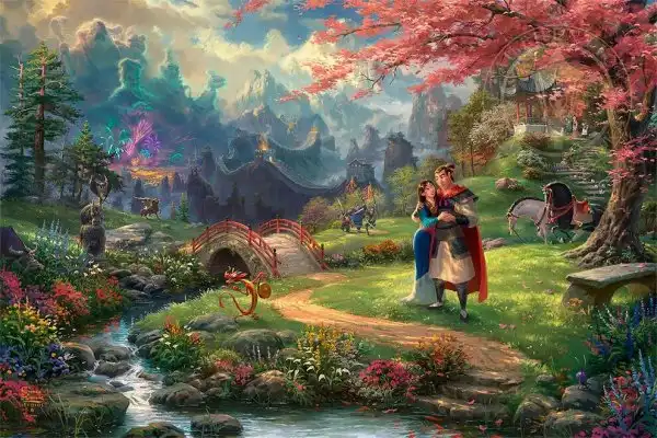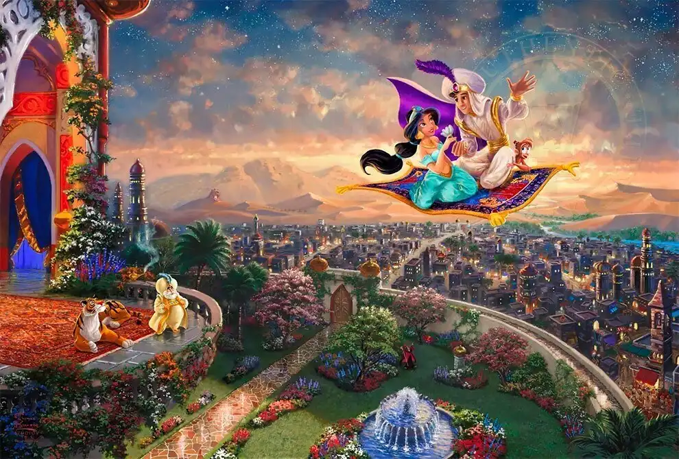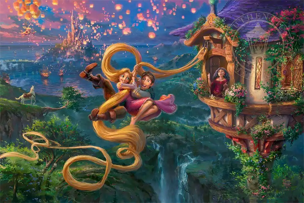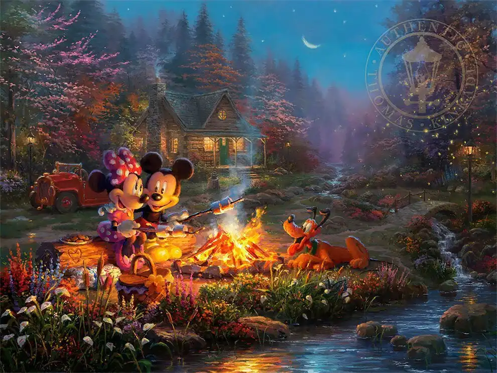 Глядя на эти сказочные сцены из диснеевских мультфильмов, трудно поверить, что это настоящие картины, а не цифровые иллюстрации. Их автор, американский художник Томас Кинкейд (1958-2012), был мастером кьяроскуро - техники живописи, использующей контрасты света и тени для создания драматичности и иллюзии объема. Вот почему любимые персонажи на этих картинах выглядят как живые.