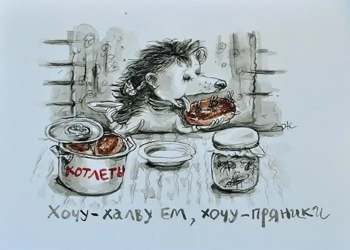 Анжела рассказала, что эта серия работ появилась совершенно случайно. В начале июня она опубликовала рисунок с ежиком, который очень понравился ее подписчикам, а спустя какое-то время девушка нарисовала колючего, сильно похожего на персонажа Армена Джигарханяна из многосерийного фильма «Место встречи изменить нельзя».