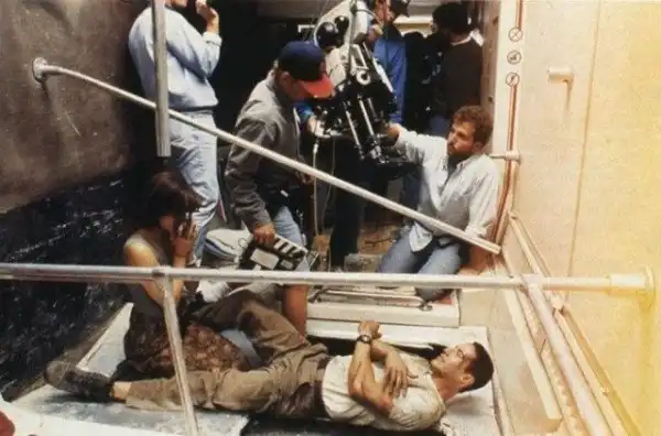 Сандра Буллок и Киану Ривз готовятся к съемкам сцены «Скорость», 1994 год