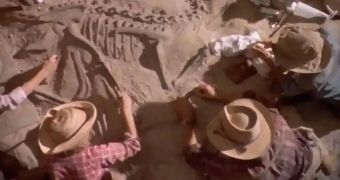Кадр с раскопок из "Парка Юрского периода-3" - это реальные кадры настоящих раскопок 2001 года с настоящими костями тиранозавра.
