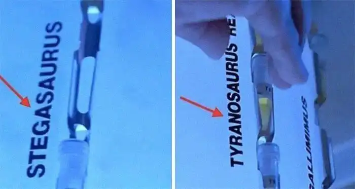 Ученые, которые, по сюжету, являются лучшими в мире специалистами в своем деле, путают буквы в названиях динозавров: пробирки с ДНК у них маркированы с ошибками.