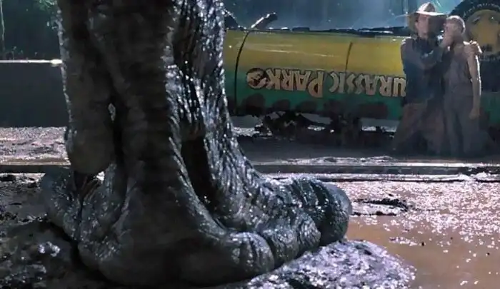 Японский турист в сцене с нападением тиранозавра на машины, очень напоминающей сцены из "Годзиллы", кричит по Японски: "Я же уехал из Японии, чтобы сбежать от этого!"