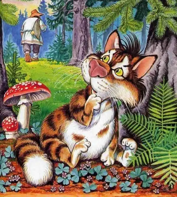 В его работах можно встретить знакомых героев, таких как Баба Яга, Снегурочка и Дед Мороз. Ещё у него есть забавная серия иллюстраций-пародий на знаменитые фильмы.