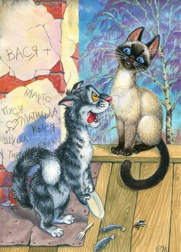 Михаил заменил актёров котами и зарисовал самые популярные сцены.