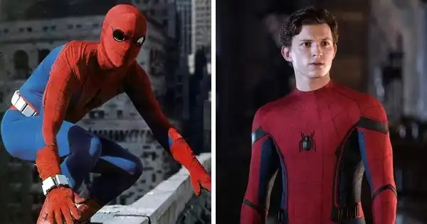 Николас Хэммонд в сериале «Человек-паук» (1977) и Том Холланд в фильме «Человек-паук: Вдали от дома» (2019).