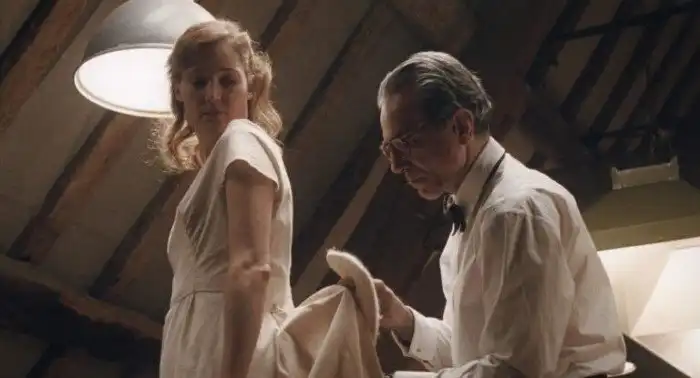 Дэниел Дэй-Льюис стал дизайнером одежды. Чтобы сыграть роль лондонского кутюрье пятидесятых годов Рейнольдса Вудкока в фильме «Призрачная нить» он с головой ушел в нюансы работы модельера. Воссоздавая классическое платье, предназначенное для бельгийской принцессы, он действует со знанием дела и выглядит весьма убедительно.
