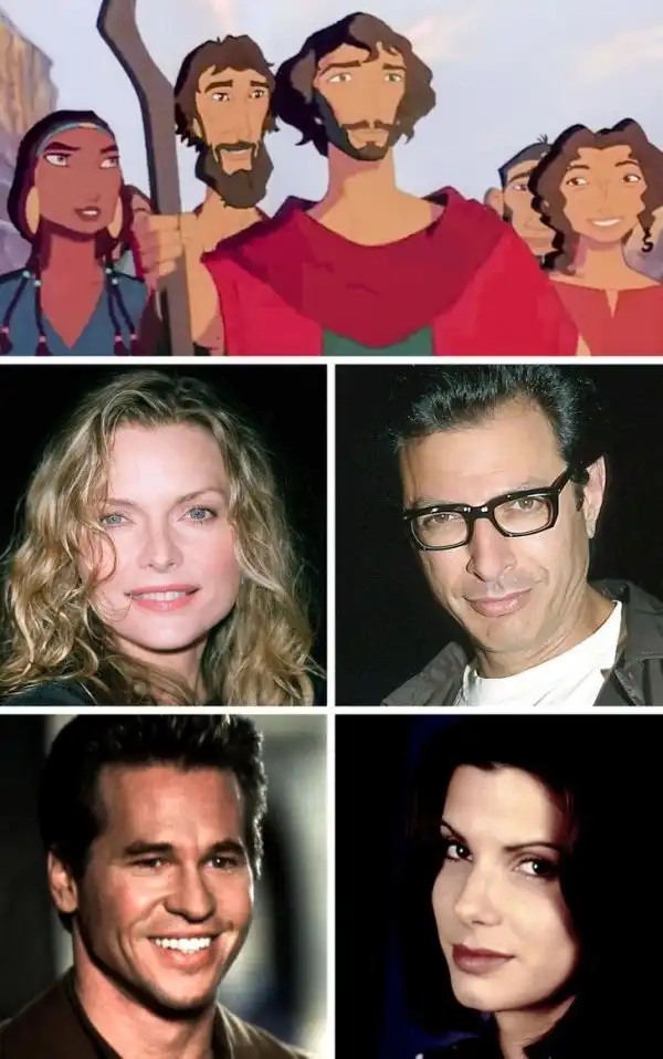 Мишель Пфайффер — Сепфора, Джефф Голдблюм — Аарон, Вэл Килмер — Моисей, Сандра Буллок — Мириам. Мультфильм «Принц Египта»