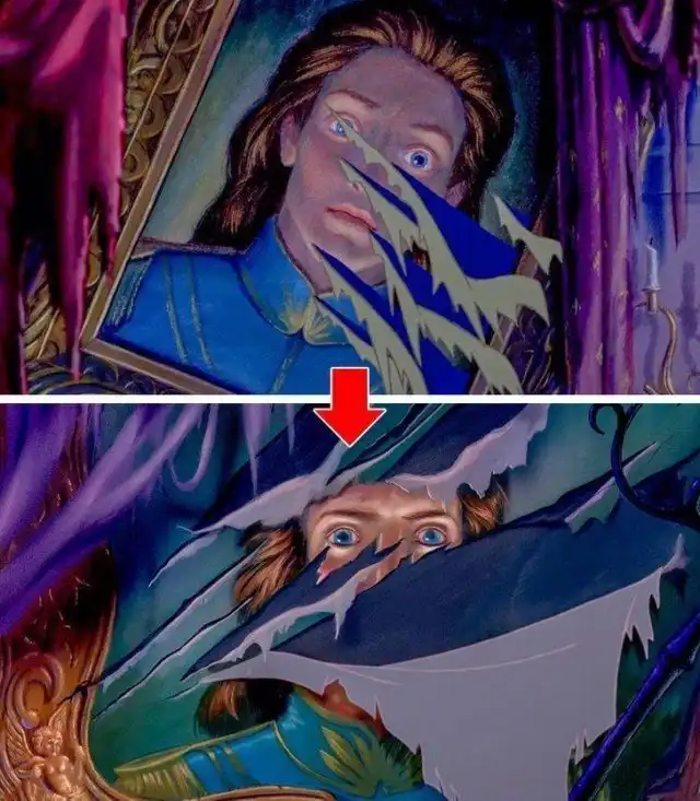 В начале мультфильма «Красавица и чудовище» мы видим, что принц разрывает когтями свой портрет после того, как превращается в чудовище. Но когда этот портрет спустя годы находит Белль, мы видим, что порезы на картине выглядят совершенно иначе.