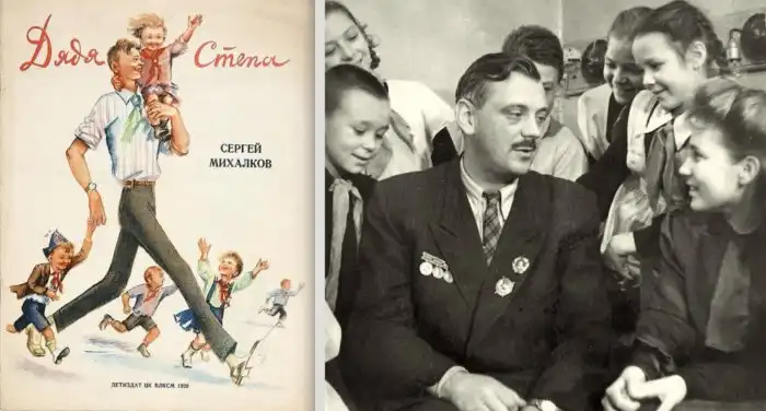 А ещё раньше художник Самуил Адливанкин подарил Дяде Стёпе внешность автора стихотворения, Сергея Михалкова: